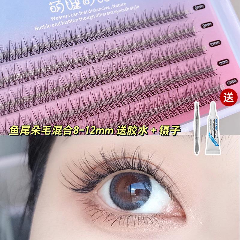 魚尾仙子毛混合裝假睫毛自然仿真嫁接自己接睫毛女自粘單簇眼睫毛