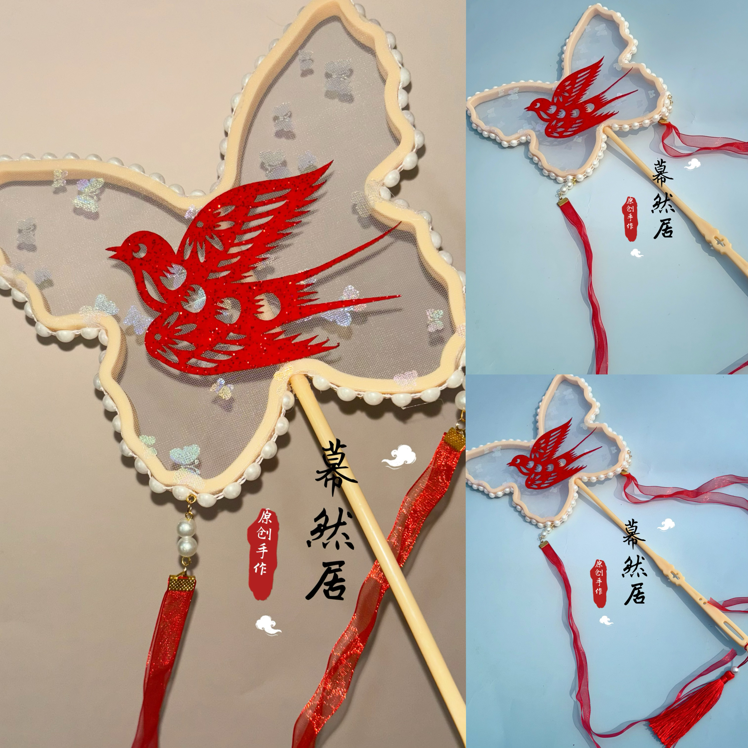 原創非遺剪紙細閃喜鵲異形團扇漢服道具古風中國蝴蝶扇子拍照舞蹈