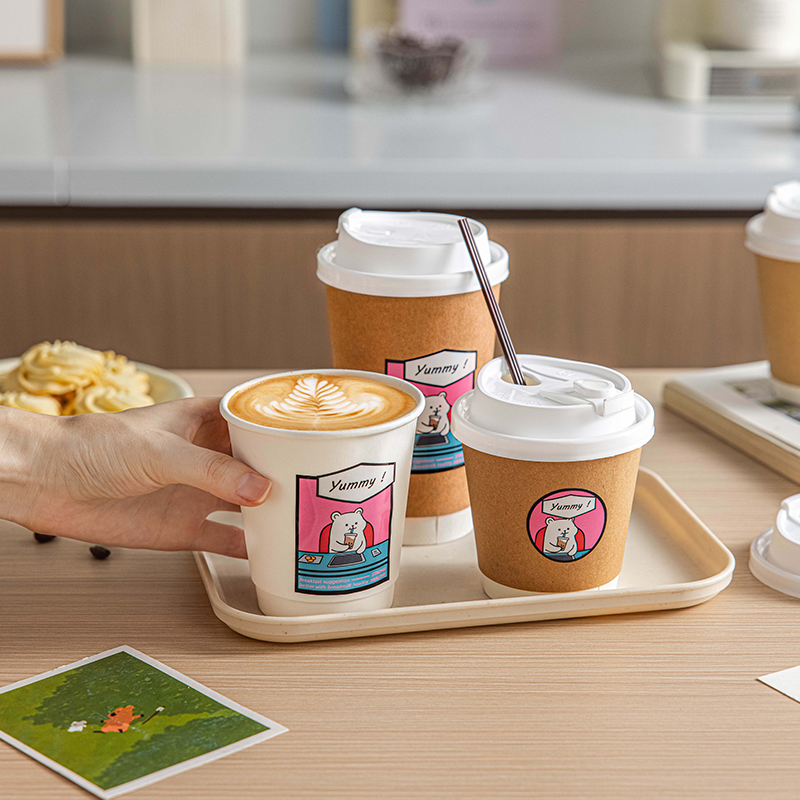 一次性咖啡紙杯帶蓋子牛皮加厚家用上班奶茶熱飲打包外帶定制商用