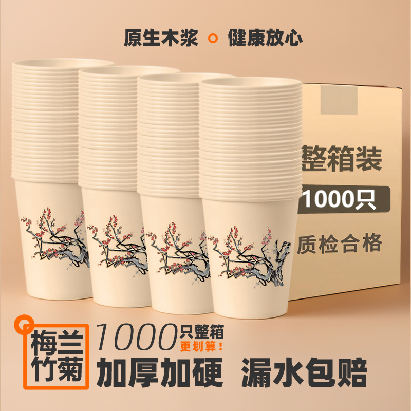 水天緣一次性紙杯辦公紙杯加厚整箱裝豆漿杯可樂杯辦公紙杯家用杯