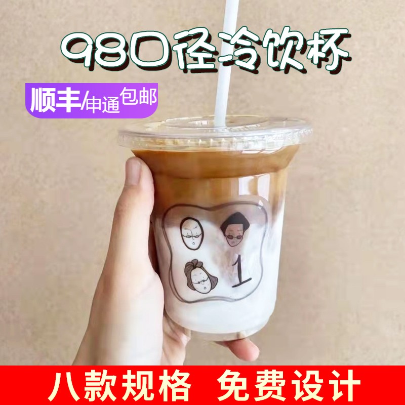 98口徑PET冷飲杯350/500ml原諒泰式檸檬茶塑料透明咖啡奶茶杯子