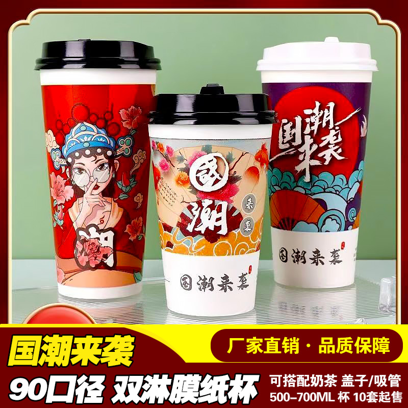 一次性國潮來襲紙杯雙淋膜冷熱飲杯90口中式古典古風奶茶豆漿粥杯