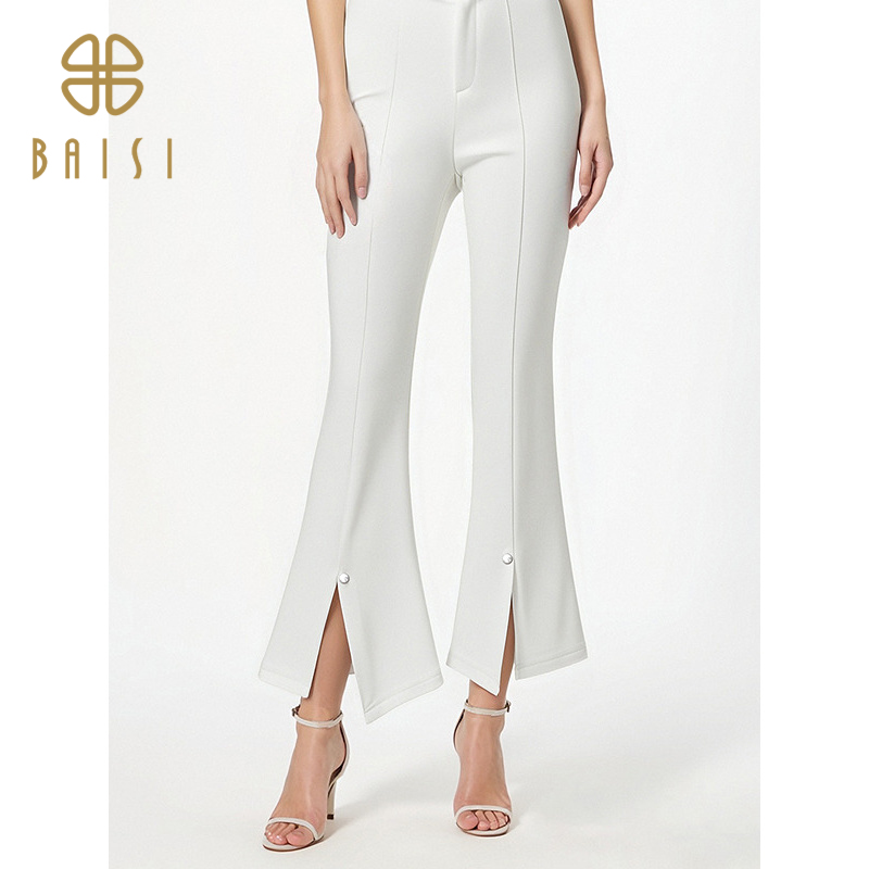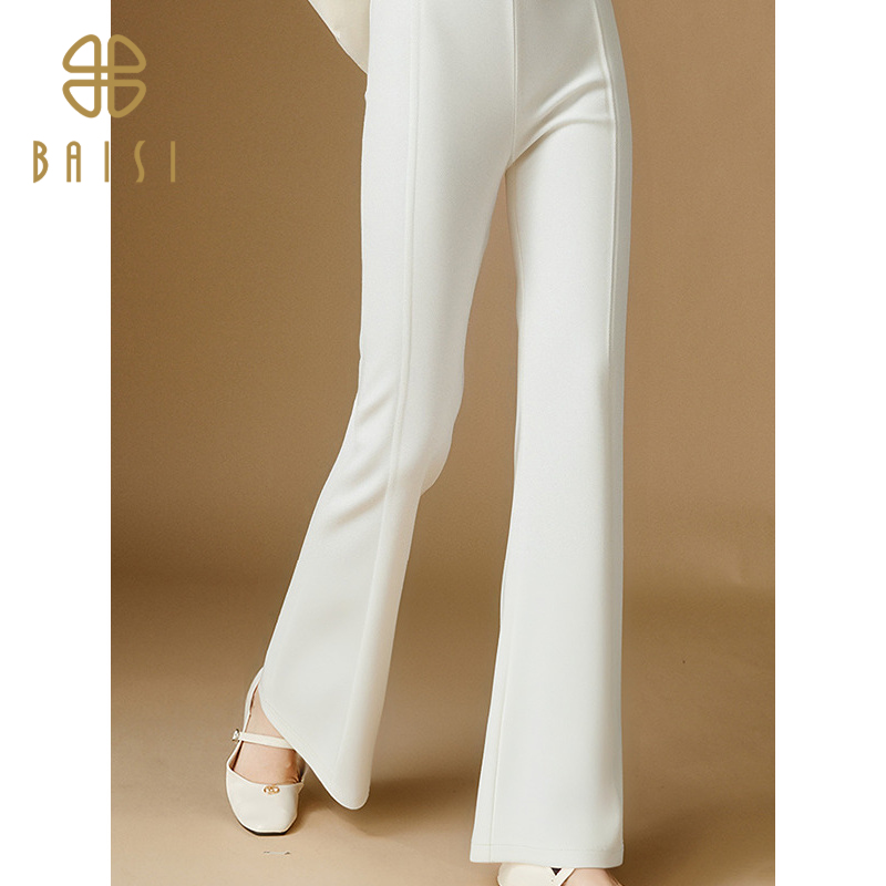 白色氣質直筒微喇褲女高腰顯瘦垂感彈力黑色百搭長褲2025春夏新品