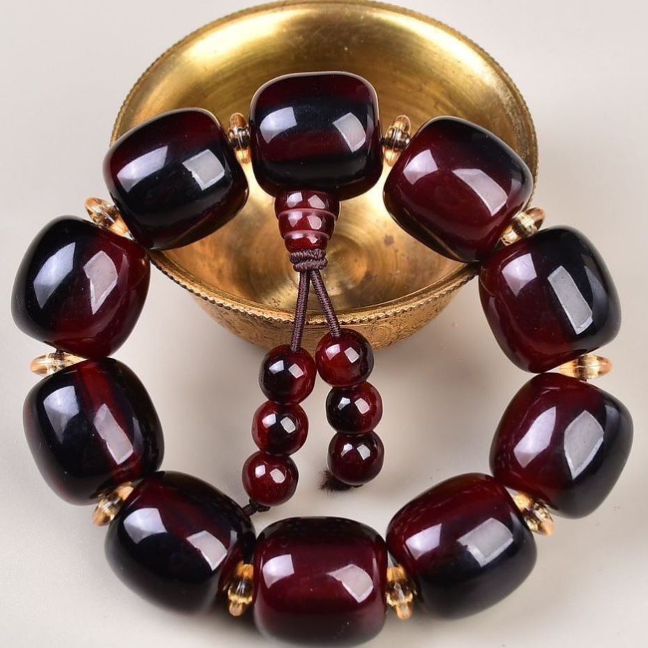 天然西藏牦牛角手串佛珠手鏈男女藏式帶血絲文玩牛角車掛手持