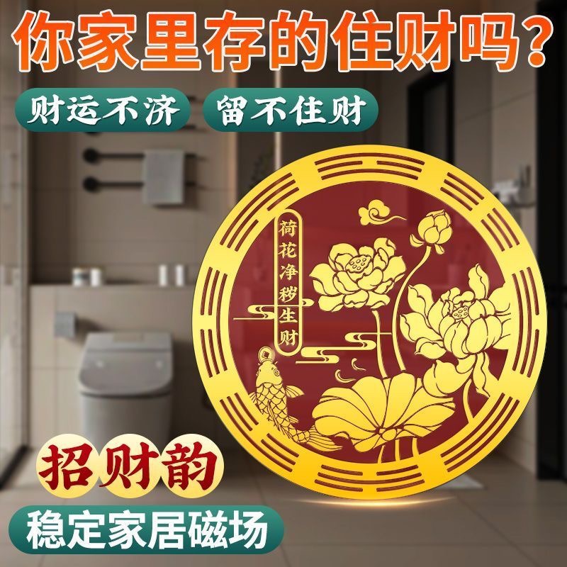好運連連荷花貼衛生間凈穢九鯉魚蓮花廁所正東西北對門上掛件貼紙