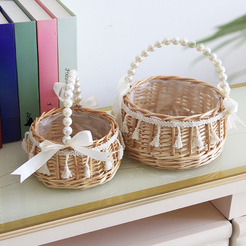 柳編手提花籃手工編織籃子雞蛋籃婚慶插花籃花童拍照道具公主籃