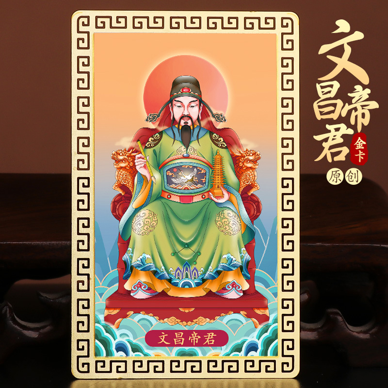 道家文昌帝君金卡畫像金榜題名家居書桌吉祥物金屬卡文化用品