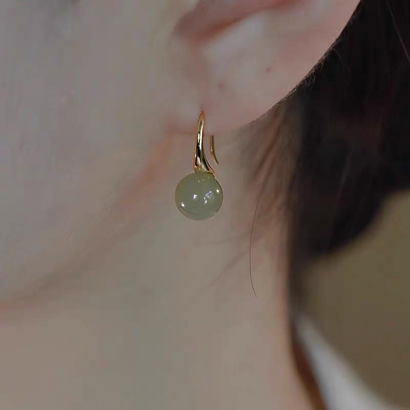 奧特萊斯和田玉耳環女 潮復古風輕奢 銀針耳釘小眾設計高級感耳鉤