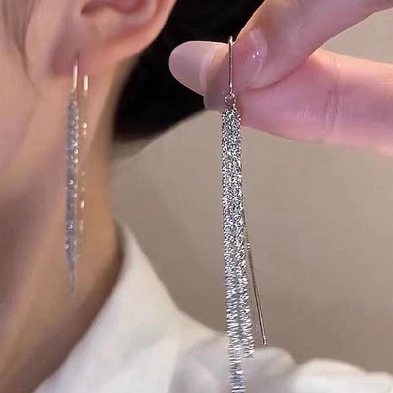 奧特萊斯專柜撤柜限時折扣清倉搶購純銀針滿天星流蘇耳環長款輕奢