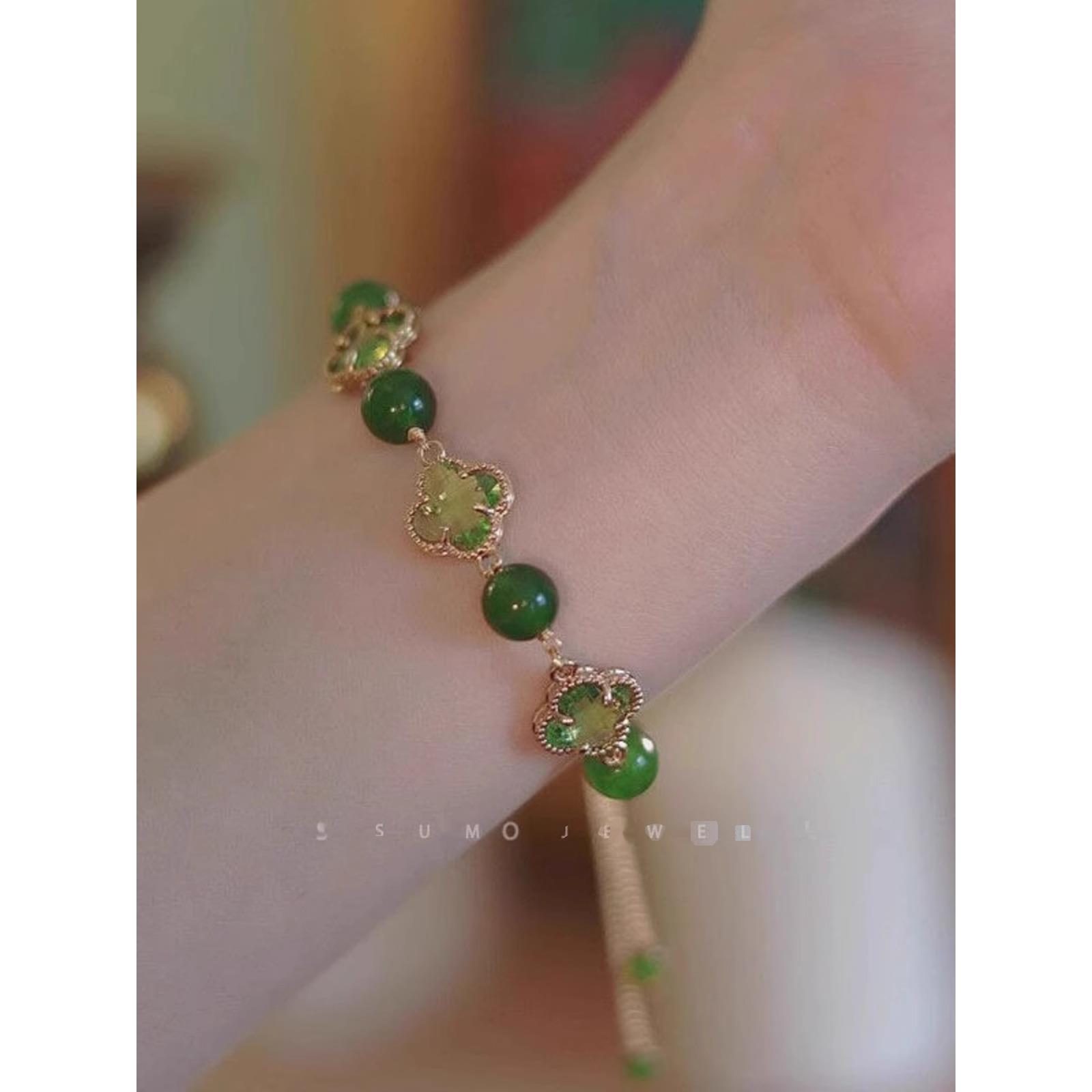 奧特萊斯專柜清倉撤柜撿漏18K金綠玉髓四葉草手鏈outlets女配飾