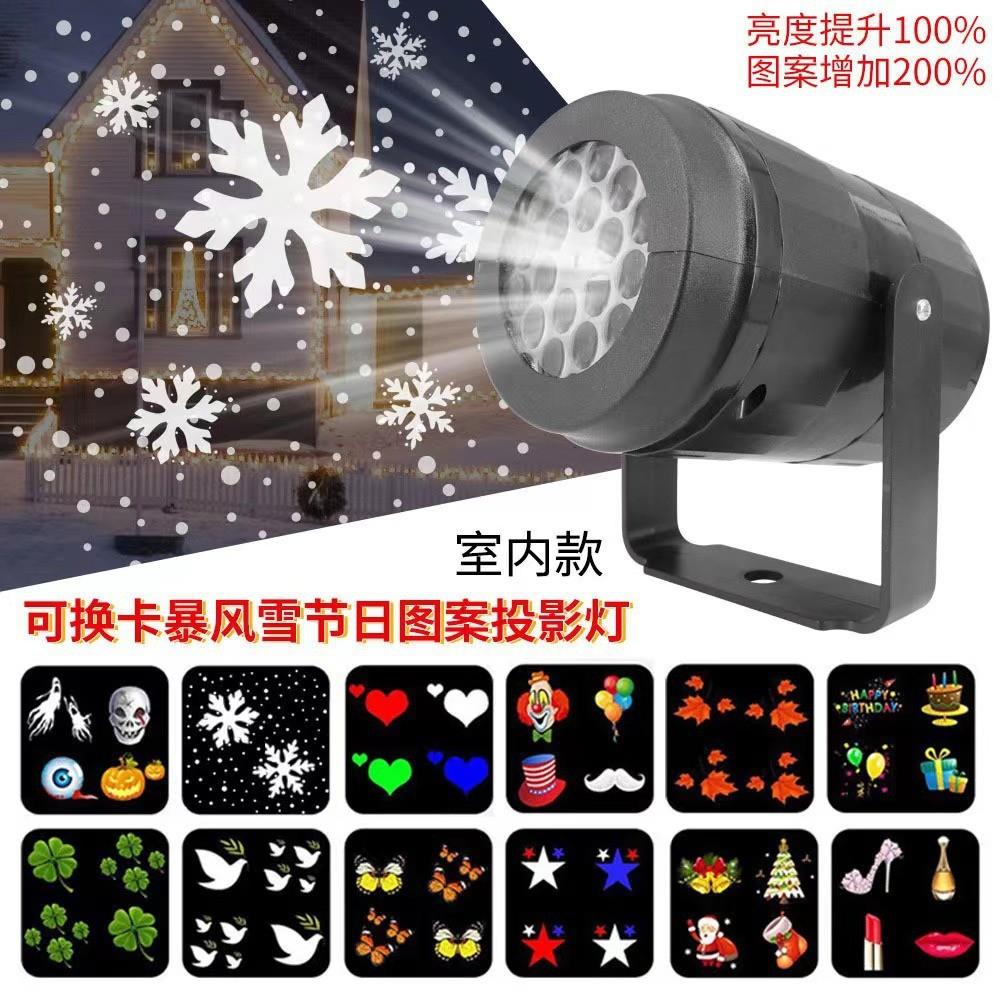 LED菲林投影燈暴風雪換卡旋轉圖案燈圣誕萬圣派對聚會氛圍燈