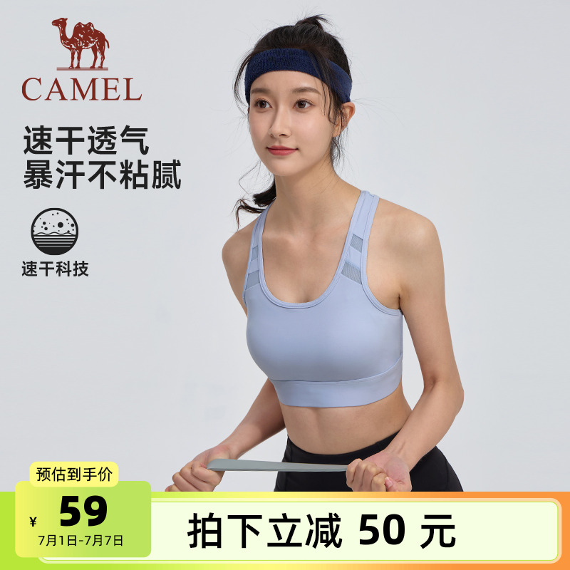 駱駝運動健身內衣背心女一體式跑步文胸中高強度防震速干瑜伽上衣