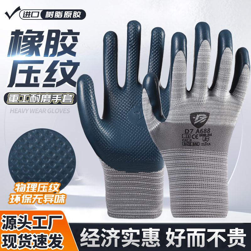 手套勞保耐磨工作乳膠皮防滑透氣不臭手建筑工地干活浸膠鋼筋工