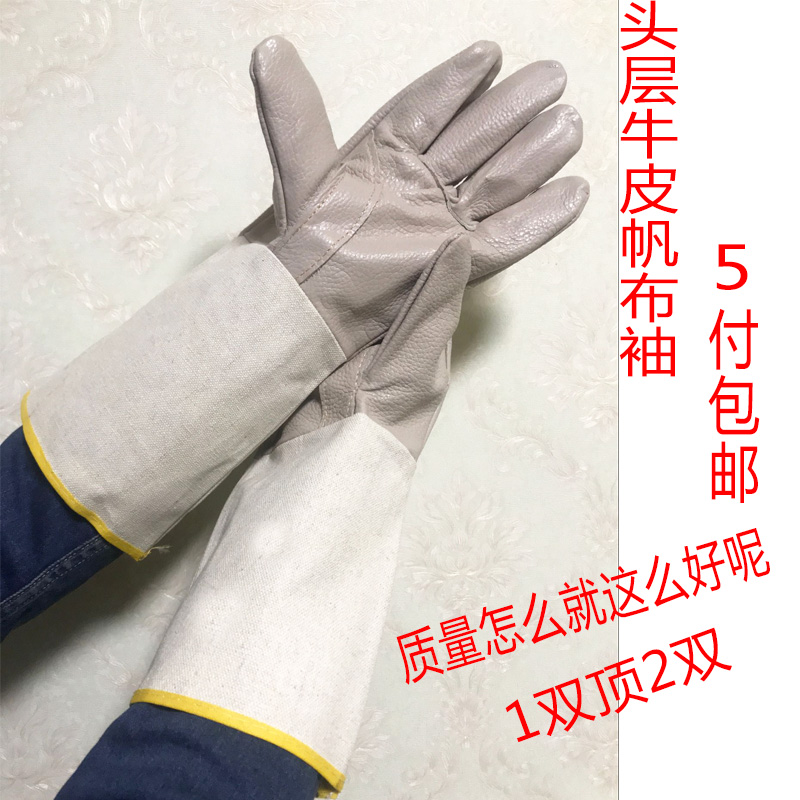 佳護長款頭層牛皮帆布袖電焊手套焊工焊接耐用耐高溫搬運隔熱手套