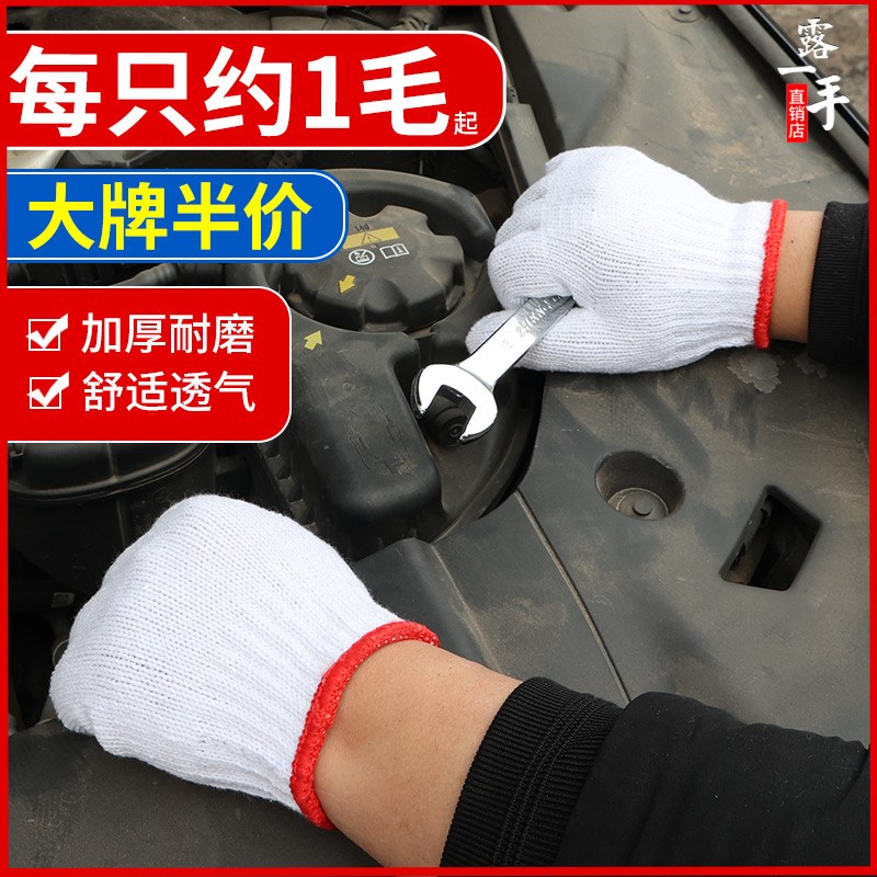 勞保手套耐磨工作防滑勞動薄款白紗棉紗棉線男Q女工地干活防護用