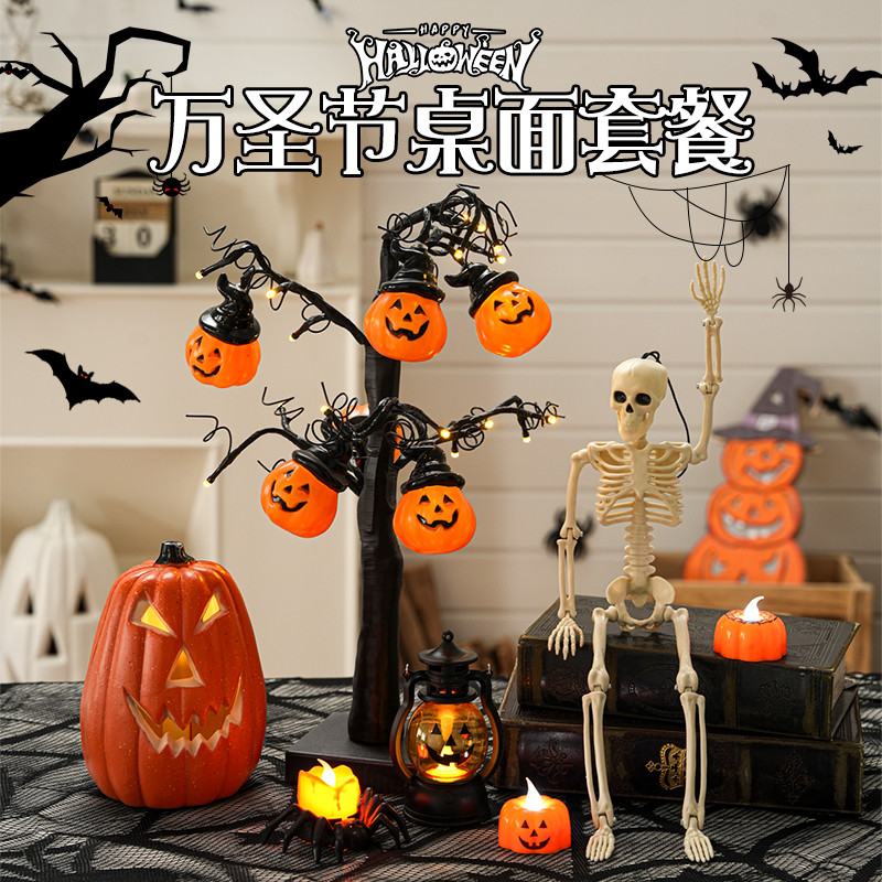 萬圣節裝飾擺件南瓜燈主題活動派對場景布置氛圍發光道具桌面套餐