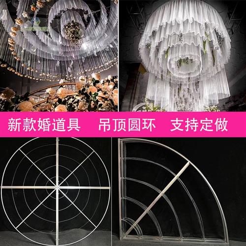 速發婚慶道具鐵藝圓環懸吊式天花板裝飾婚禮紗幔懸吊式天花板5層