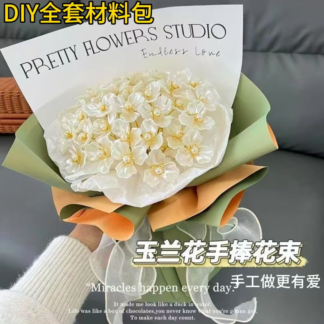 玉蘭花手工自制diy花束材料送媽媽女友閨蜜七夕情人節母親節禮物