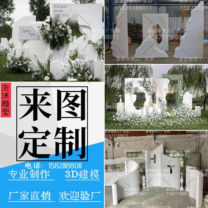 戶外極簡婚禮主題道具侘寂風泡沫雕塑婚慶舞臺布景櫥窗背景墻定制