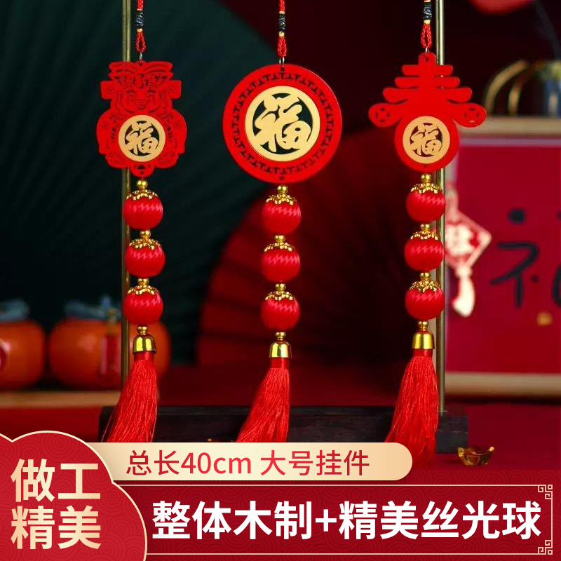 桃木對聯中國結大號新款客廳影視墻玄關喬遷福字春節裝飾高檔掛件