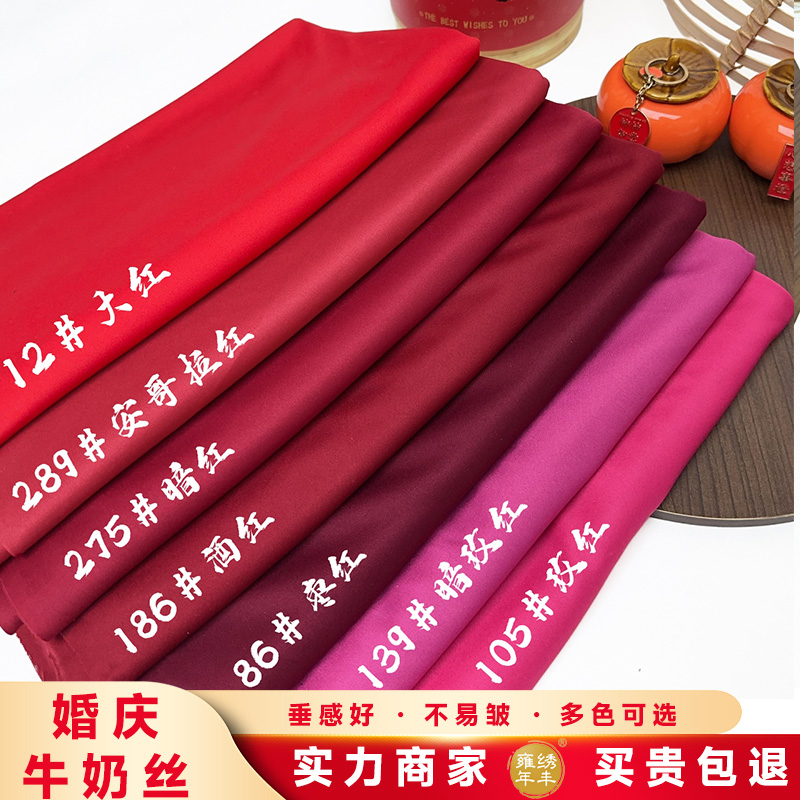 紅色系彈力布料牛奶絲吊頂波浪布婚慶舞臺紗幔背景布幔人字形面料