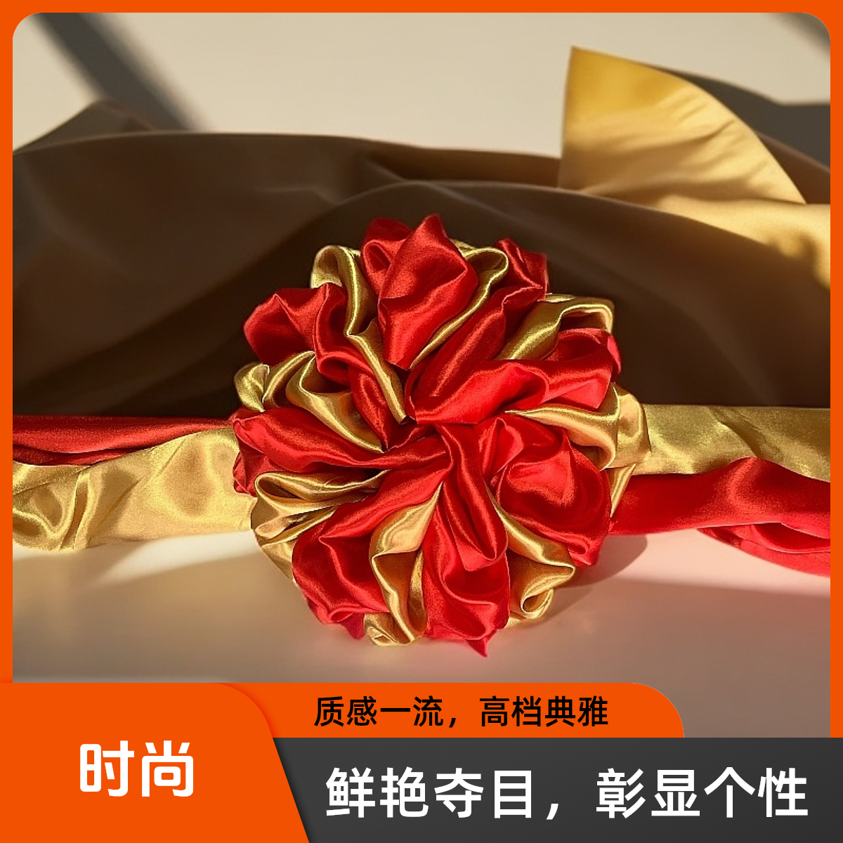 大紅花球紅綢緞花球紅金花球彩球金黃色開業剪彩婚慶紅黃相間彩球