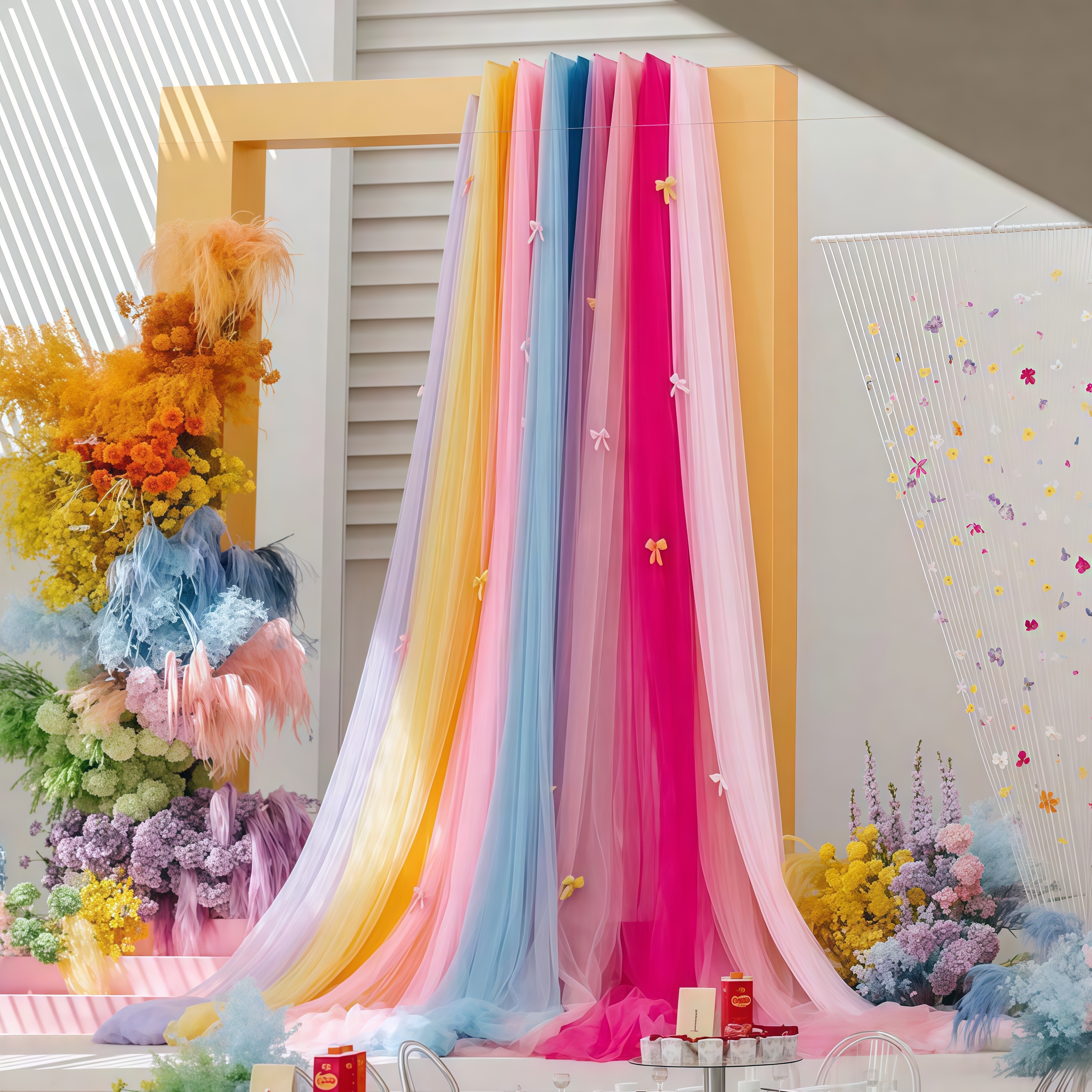 多巴胺婚禮彩色網紗生日周歲宴裝飾紗幔幼兒園環創瑞士紗場景布置