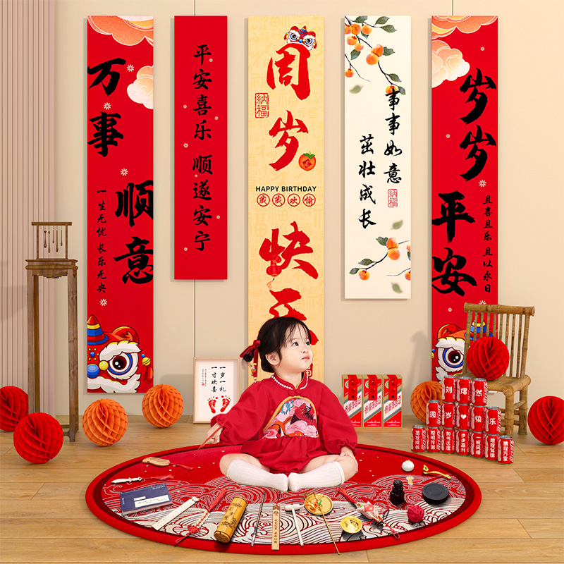 龍寶寶一周歲生日布置裝飾抓周背景墻道具條幅掛布儀式感1旗艦店