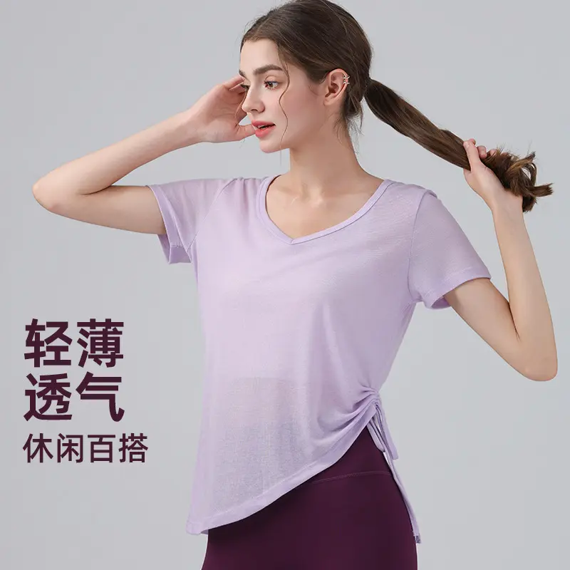 運動t恤女薄款短袖透氣跑步騎行健身衣外穿寬松不規則瑜伽服罩衫