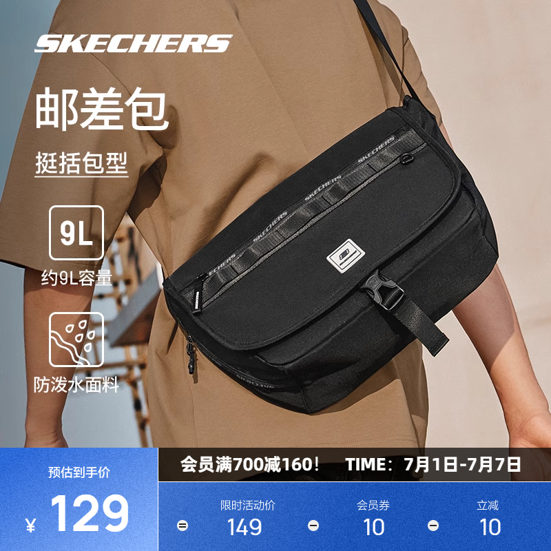 斯凱奇夏季新品單肩斜挎包大容量防潑水時尚復古潮流百搭輕巧小包