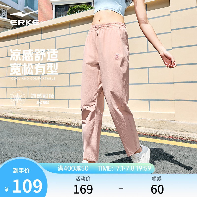 特步運動褲女款夏季薄款褲子束腳褲大碼九分褲官方寬松冰絲速干褲