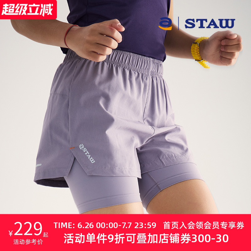 STAW世拓Run2.0升級二合一含內襯褲子速干馬拉松訓練運動跑步短褲