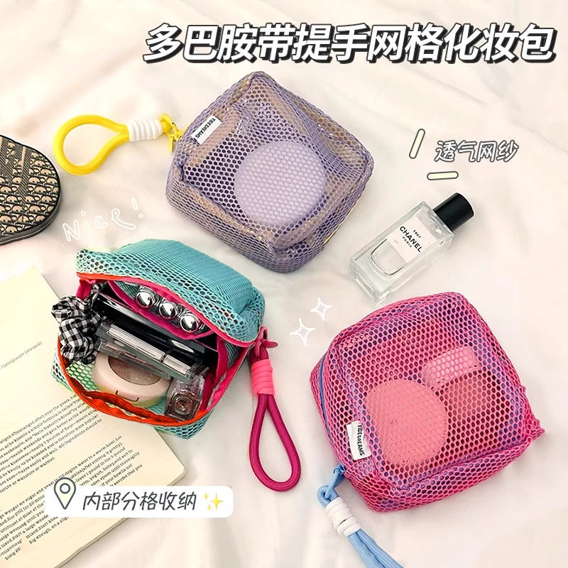 多巴胺豆腐包迷你網紗便攜旅行洗漱化妝品收納包補妝包網格雜物包