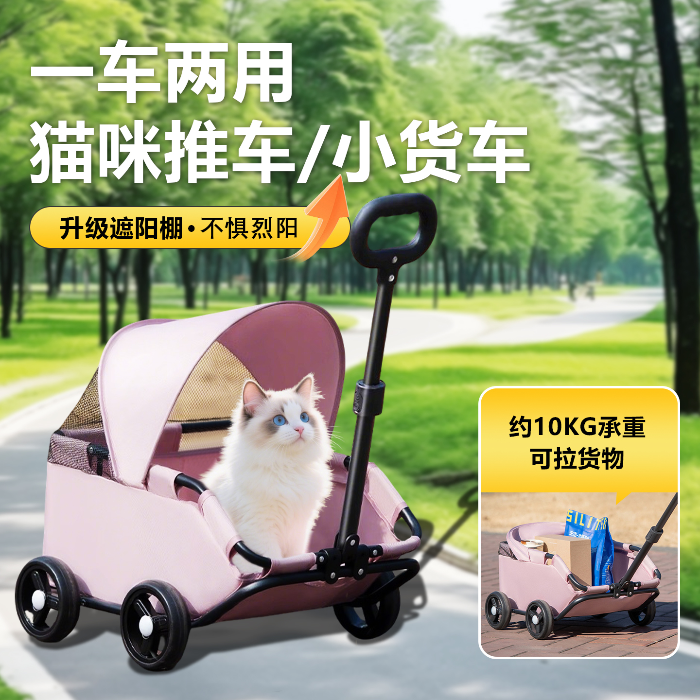 貓咪推車輕便可折疊寵物一鍵收車外出小推車遛小貓專用拖車露營車