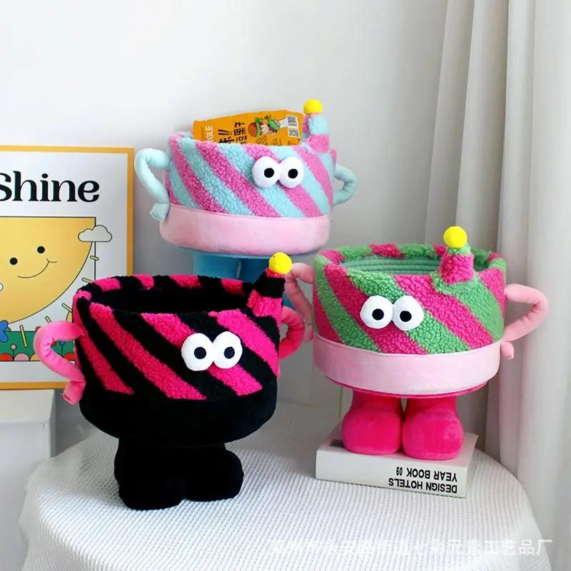 小怪獸收納籃編織桌面床頭家用整理儲物可愛卡通搞怪多巴胺收納筐