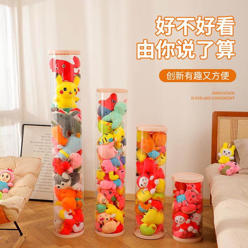 拉鏈款娃娃收納桶兒童毛絨玩具整理收納桶大容量透明收納筒批發