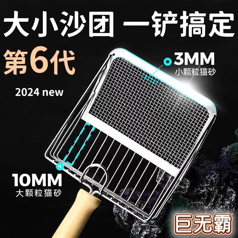 貓砂鏟二合一金屬不銹鋼細孔貓屎鏟子礦砂豆腐砂網鏟大號專用鏟屎