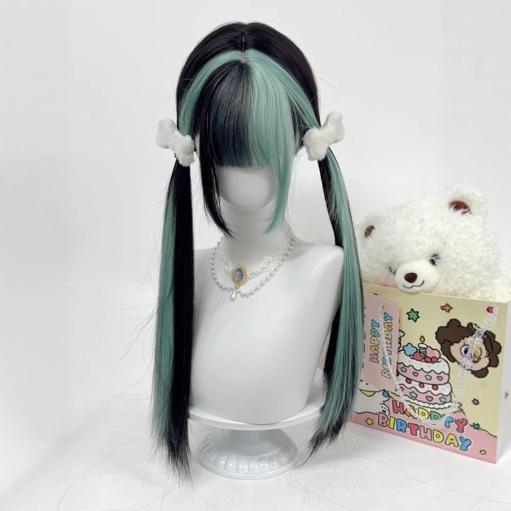 纖韻佳人假發女薄荷脆巧lolita少女圣誕節黑挑染薄荷綠長直全頭套
