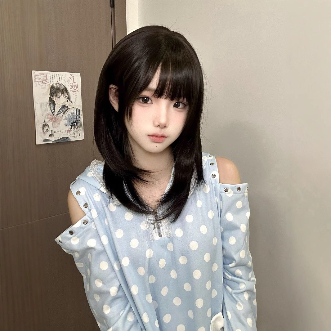 纖韻佳人假發女黑棕鎖骨發y2k網紅亞文化齊劉海高層次短直發全頭