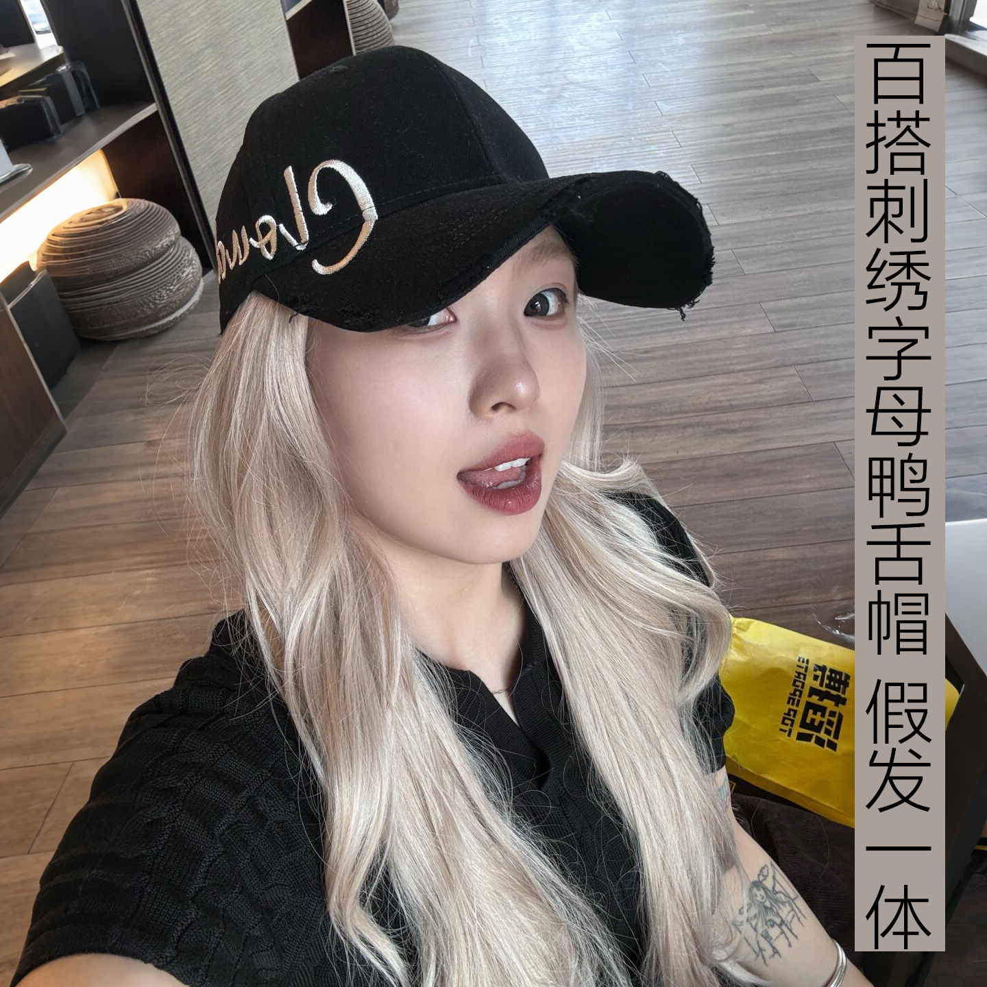 帽子假發一體時尚鴨舌帽長卷發仿真發自然假發女長發假發帽全頭套