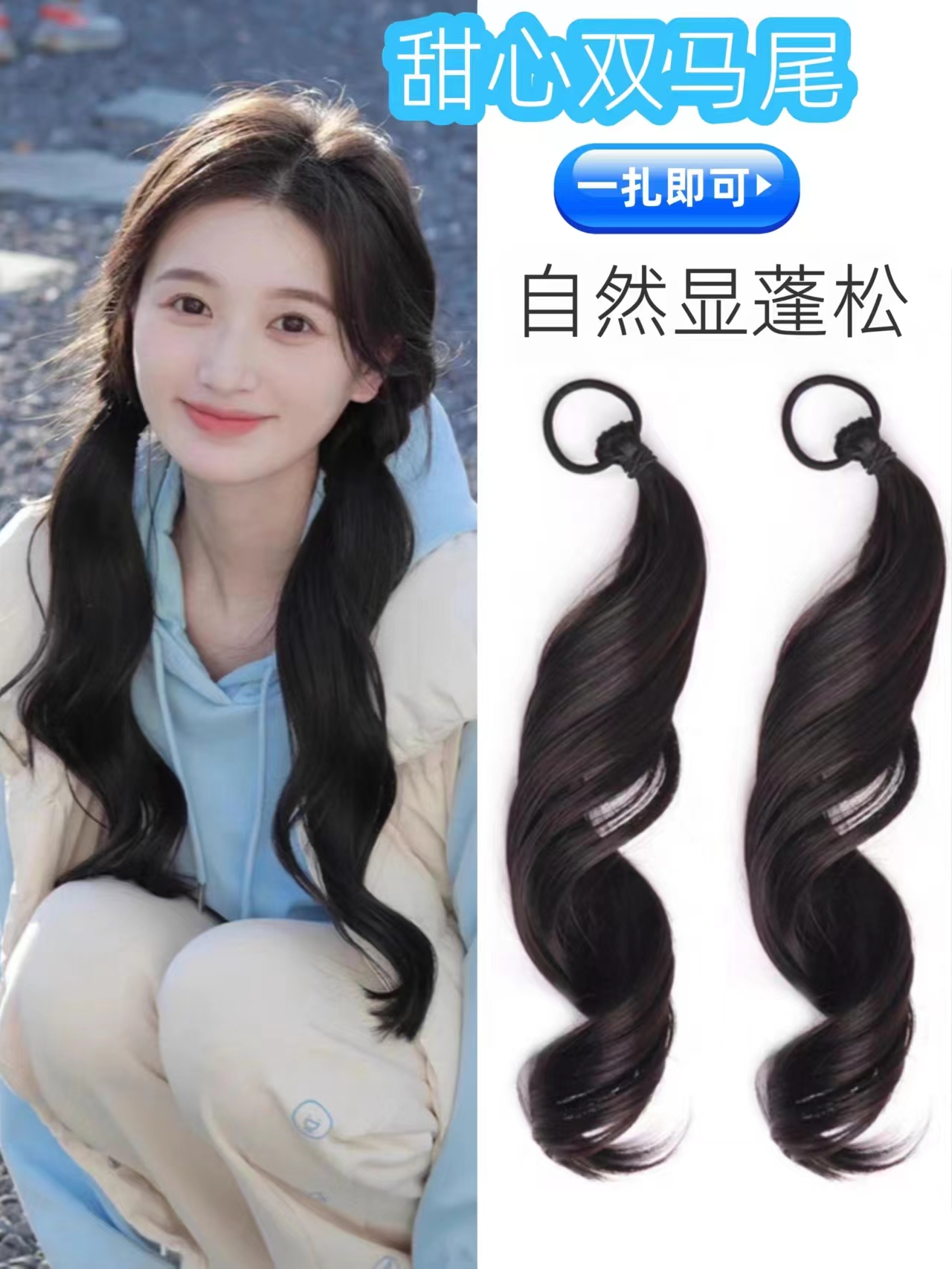 大波浪卷發馬尾綁帶式抓夾假發片可扎馬尾仿真發假發辮雙馬尾發飾