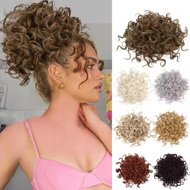 假發女式拉美卷發馬尾發繩歐美抓夾發包發飾頭頂蓬松丸子頭假發圈