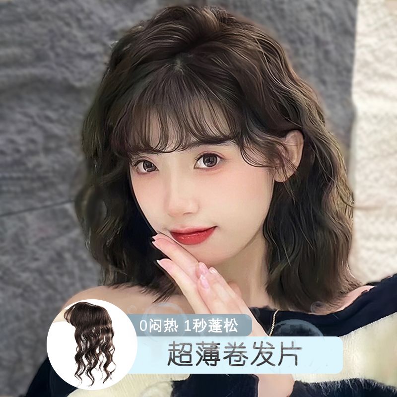 小野家假發片女八字劉海大波浪長卷發片隱形自然全真發頭頂補發片