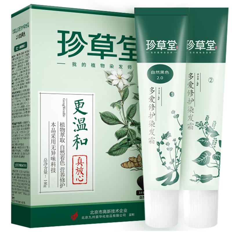 珍草堂無氨不異味染發劑純環保染發膏植物發酵自然遮蓋白發不刺鼻