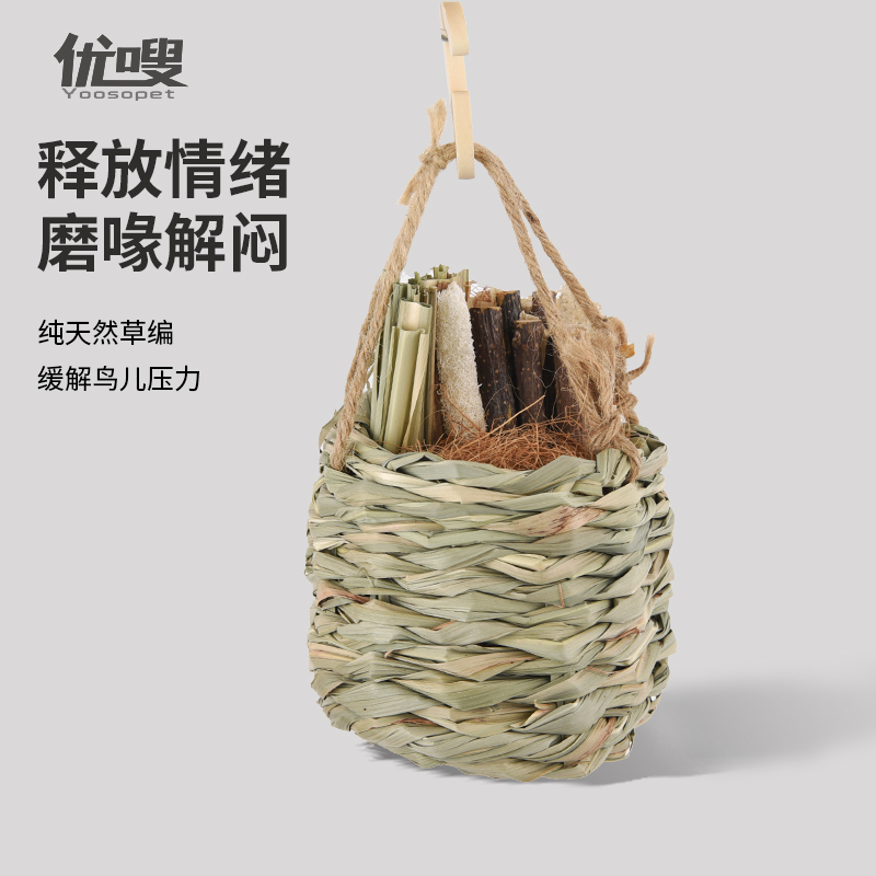 優嗖鸚鵡啃咬玩具天然健康草編玉米葉掛串鳥籠造景解悶尋覓錦囊福