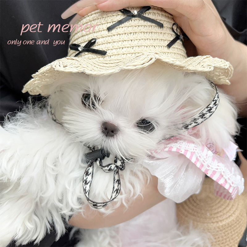 小紅書爆款韓國ins寵物狗帽子遮陽帽草帽馬爾濟斯泰迪田園風裝飾