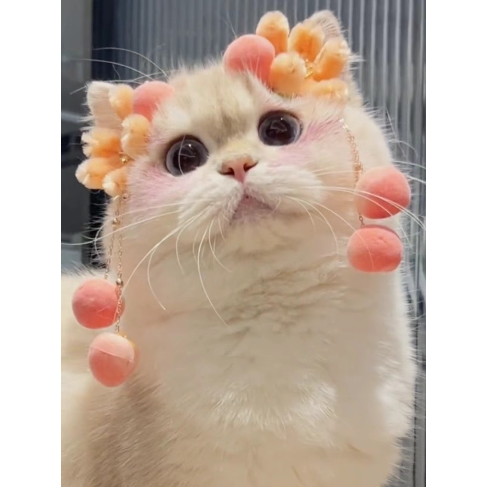 蜜桃發夾貓咪頭飾新款拜年寵物頭飾可愛新年狗發卡碎發夾古風夾子