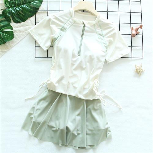 保守泳衣ins風學生版女孩純色分體泳衣夏季游泳館可愛泳裝泡溫泉