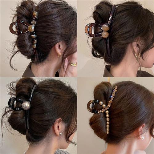 15cm高級感韓版珍珠爆款抓夾新款輕奢閃鉆鯊魚夾后腦勺盤發夾發卡
