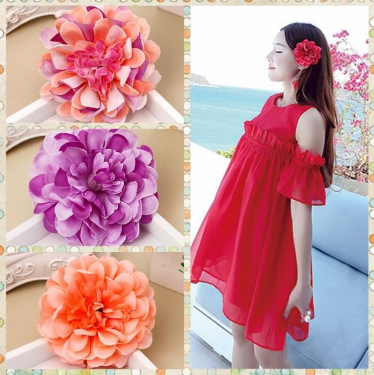 新款歐美女士頭花 10cm日式茶花發夾仿真布藝胸針胸花 結婚度假花